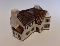 Model appears more like the Tey model version than the actual building. Gold Sulleys sticker on back. The potter has no recollection of this model.