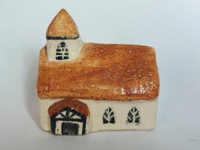 A small model of what appears to be a chapel with a bell tower. Location unknown.