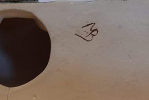 The most common identification is the gold sticker. This comes in several forms, some of which refer to “Sulleys Ceramics, Tunstall” others to “Marjorie Barton, Dovercourt”